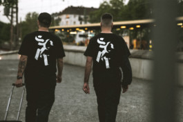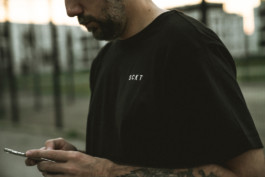 SCKT T-Shirt with stitched label logo on the front and huge screen-print on the back.